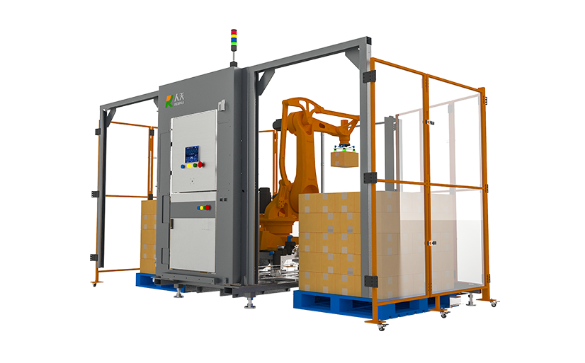 JDR可移動機(jī)器人碼垛工作站采用工業(yè)機(jī)器人為碼垛執(zhí)行器,具備機(jī)器人碼垛的卓越靈活性,適用于多種紙箱,袋產(chǎn)品。碼放?式由HMI靈活組態(tài),現(xiàn)場操作人員即可輕松掌握。設(shè)備內(nèi)置高級安全控制,取放托盤時無需停機(jī),保持高?產(chǎn)效率,縮短了整個碼垛工序需要緩沖輸送?度。設(shè)備內(nèi)置真空源,防護(hù)裝置可折疊設(shè)計,可在30分鐘內(nèi)在不同?產(chǎn)線之間完成切換。